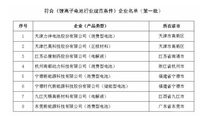 入围国家锂电池行业规范企业名单